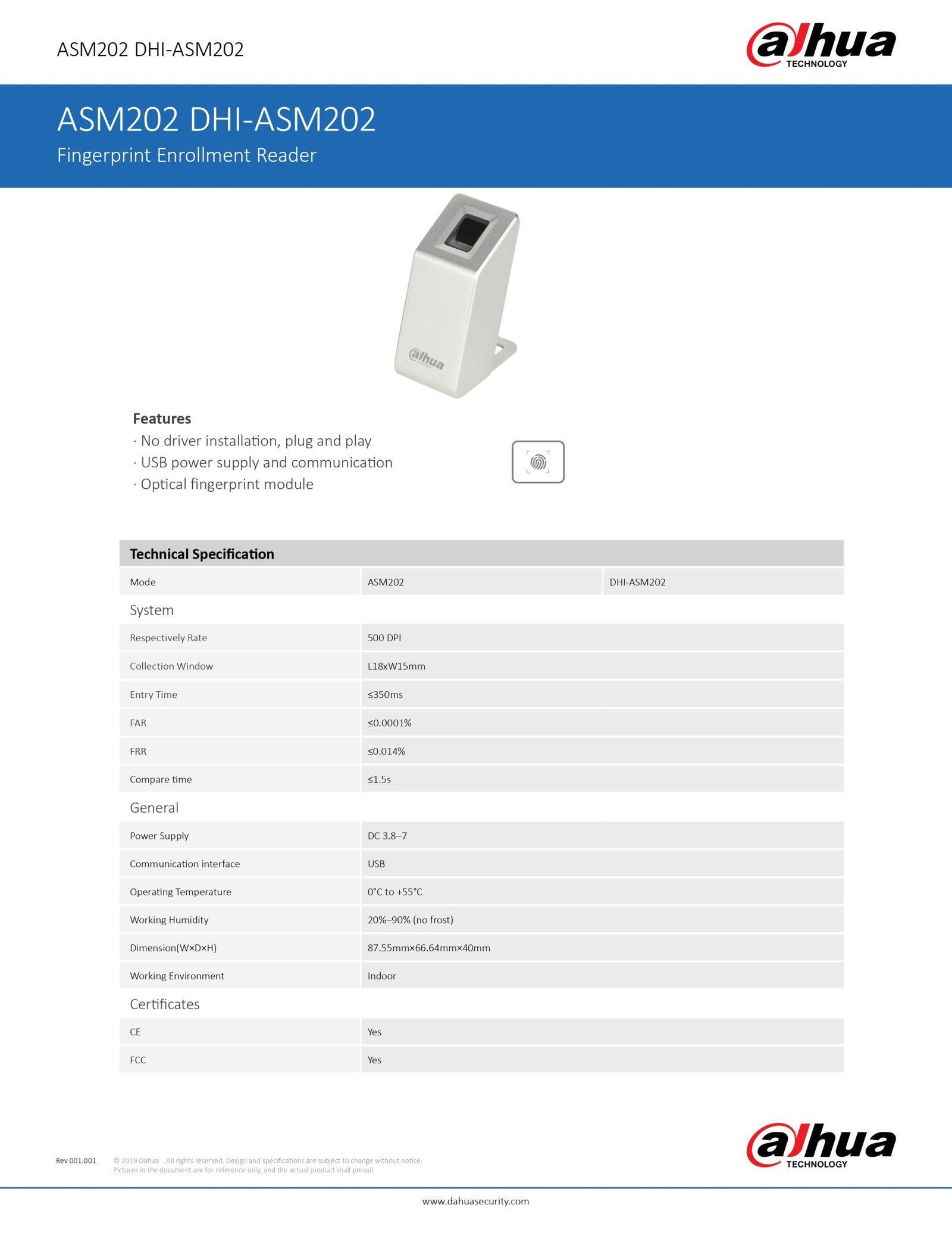| Detail: | Dahua Fingerprint Enrollment Reader |