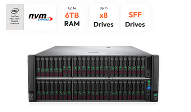 - HPE ProLiant DL580 Gen10 server has a flexible processor tray allowing it to scale up from one to four processors as needed, saving on upfront costs and the flexible drive cage design supports up to 48 Small Form Factor (SFF) SAS/SATA drives and a maximum of 20 NVMe drives.
