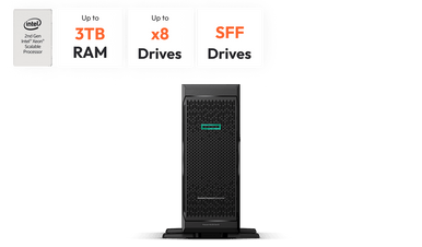 - HPE ProLiant ML350 Gen10 server supports up to two Intel Xeon Scalable processors, starting from Bronze through Platinum, 4 cores expanding up to 28 core processors offering unparalleled performance.