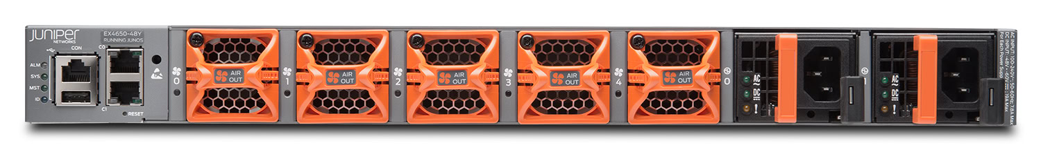 The EX4600‑40F supports Virtual Chassis and Virtual Chassis Fabric (VCF) technology, enabling multiple units (up to 10) to be managed and operated as a single logical chassis for simplified scaling and resilience. MACsec AES‑256 encryption provides secure link‑layer protection, ensuring secure connectivity over fiber segments. Optional hot‑swappable power supplies and fan trays with front‑to‑back (or configurable) airflow make the switch suitable for rack environments with strict cooling requirements.