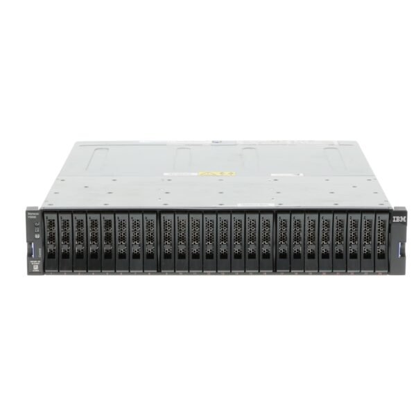 From a hardware perspective, the V5000 uses a dual-controller (dual node canister) architecture with mirrored cache, ensuring high availability and redundancy. It is available in both 2.5-inch (SFF) and 3.5-inch (LFF) configurations, supporting a mix of SSDs, high-performance SAS drives, and nearline HDDs for hybrid storage deployment.
